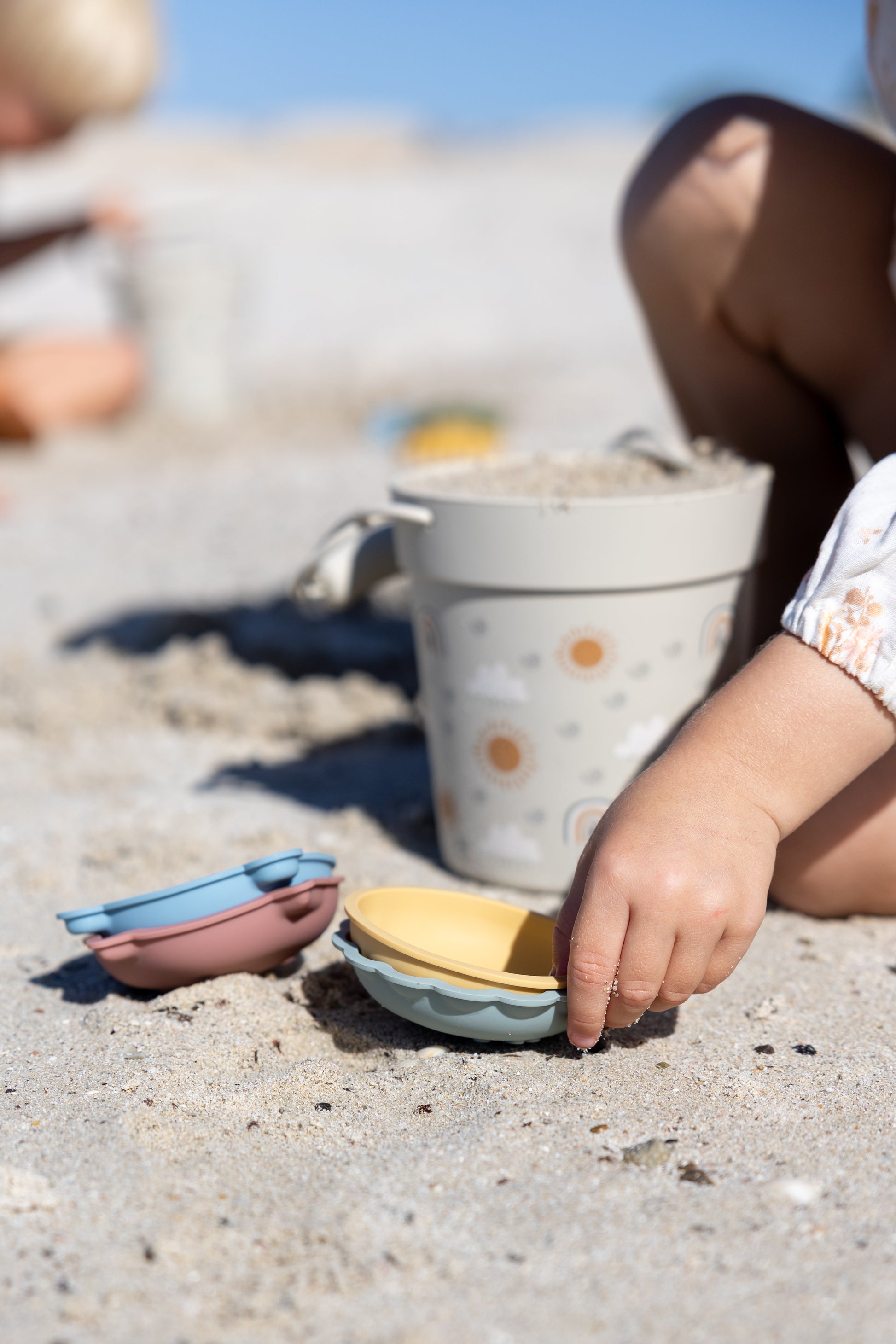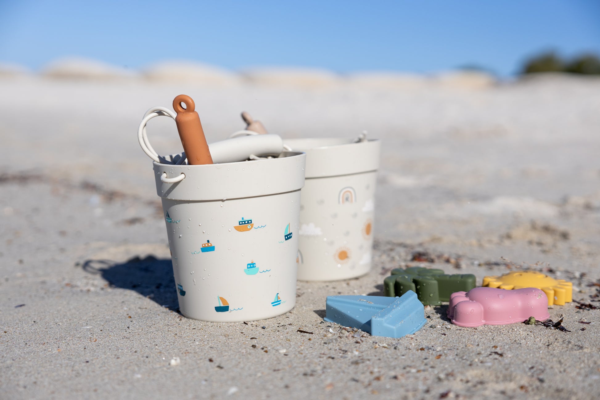 An absolute need for those Summer beach days! Our beach bucket sets are made from 100% silicone, unlike plastic sets that deteriorate in the sun and water over time, these silicone sets are practically indestructible. Each set comes with a beach bucket, spade, four sand moulds and a lid.