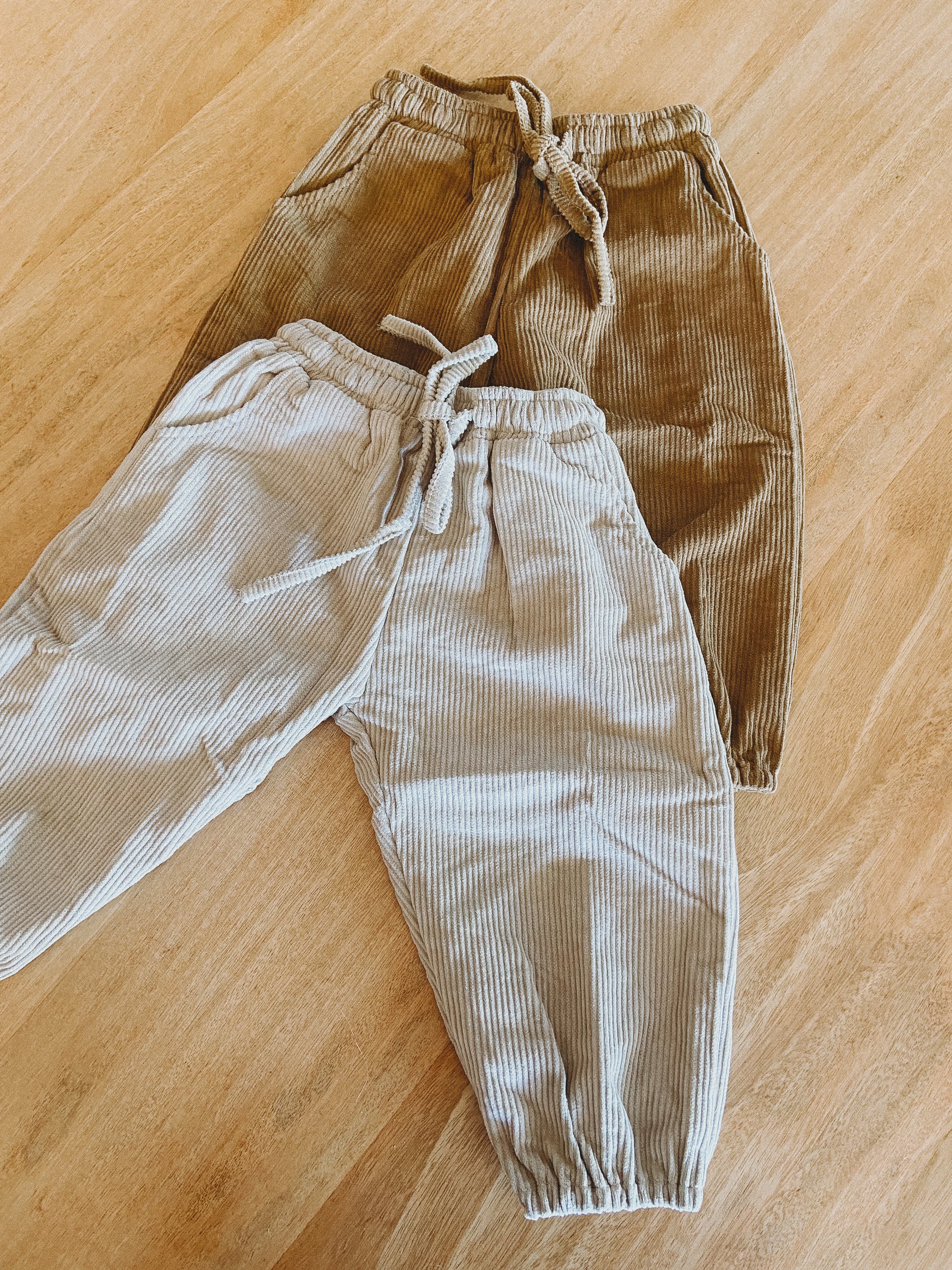 These corduroy pants are a staple piece for your child's wardrobe. The corduroy is thick and durable to withstand all types of adventures and play. You will be reaching for these time and time again as a stylish but comfy alternative to track pants in the colder months. These pants feature an elastic waist with a functional draw string and elastic ankles so you can easily pull them up for splashing in puddles.
